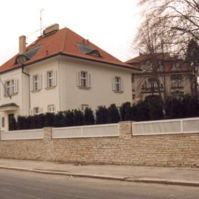 The Art Deco style villa was renovated from the foundations up. The reason was the renewal of original construction elements and their nuances. The plans also included design of some of the new fitted furniture, for example bookshelves. The newly built pool in the Southwestern part of the site is partly inset into the slope and in its simplicity remains subordinate to the villa. The glazed North facade opens onto a garden. The interior serves as a sala terrena with the floor on the level of outside garden. The sun's rays penetrate through a ceiling aperture of circular shape. Water heating is solved with the aid of geological shafts. The garden is protected by a boundary wall from rapidly patinating sandstone, which will soon be covered with climbing foliage, not only on the inner side, but also rather along the entire street frontage