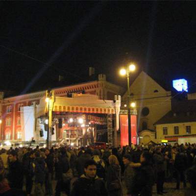 Investor se na nás obrátil v průběhu stavebních prací se žádostí o návrh Hodinové věže a obou hlavních vstupů do areálu. Hodinová věž je řešena jako výrazná dominanta širšího okolí s klasickými neonovými hodinami a neonovou reklamou obchodního centra-postavou andělského trubače. Hlavní vstup z Náměstí republiky je zastřešen skleněnou prosvětlenou markýzou a korunován výraznou skleněnou reklamní plochou,mírně vykloněnou od fasády. Boční vstup z ulice Na Poříčí je opět kryt skleněnou svítící markýzou. V dalším průběhu prací jsme řešili povrchové úpravy celého Náměstí Republiky v kombinaci žulových a mramorových dlažeb,veřejné osvětlení,tramvajovou trať s trolejovým vedením,vstupy do Metra a veškeré architektonické detaily ve veřejném prostoru náměstí.