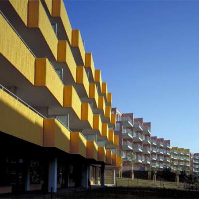 The large housing premises are situated at one of the most impressive locations in Prague near Třešňovka orchard and natural monument Velká Skála. This location affords great distant view. The housing group is a green field site realized by three architects offices ARKÁDA, KAMA and DaM. Civic design concept, based on simple communication system and natural amphitheater form imitation, enables to make a profit of spectacular view of Prague. The variety of houses meets customer's different requirements. You can find here classical apartment houses as well as luxury villas. Construction architecture accentuates shape simplicity, space and disposition purity and noticeable colouring. The vast complex project was inspired by pre-war housing unit construction Weissenhof in Stuttgart and Baba in Prague 6.